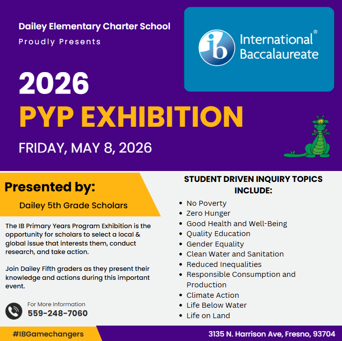 Dailey Elementary Charter School aims to develop and empower internationally minded students. We aim to do this by balancing the International Baccalaureate Primary Years Program and the State Standards, to foster caring and compassionate life-long learners.